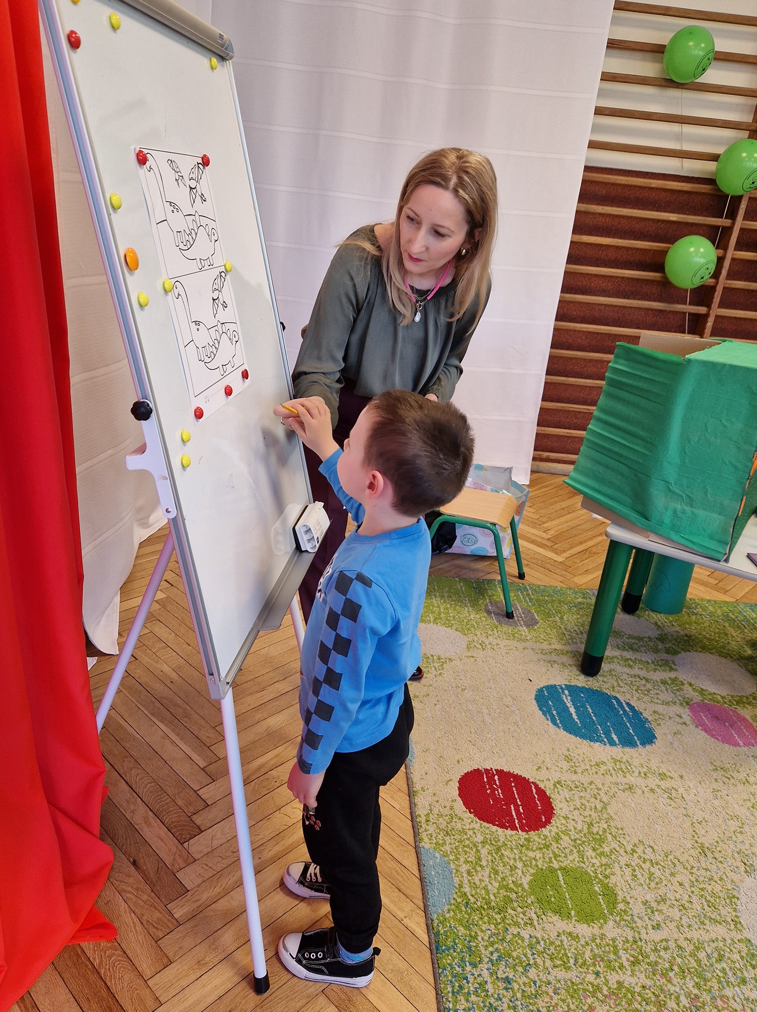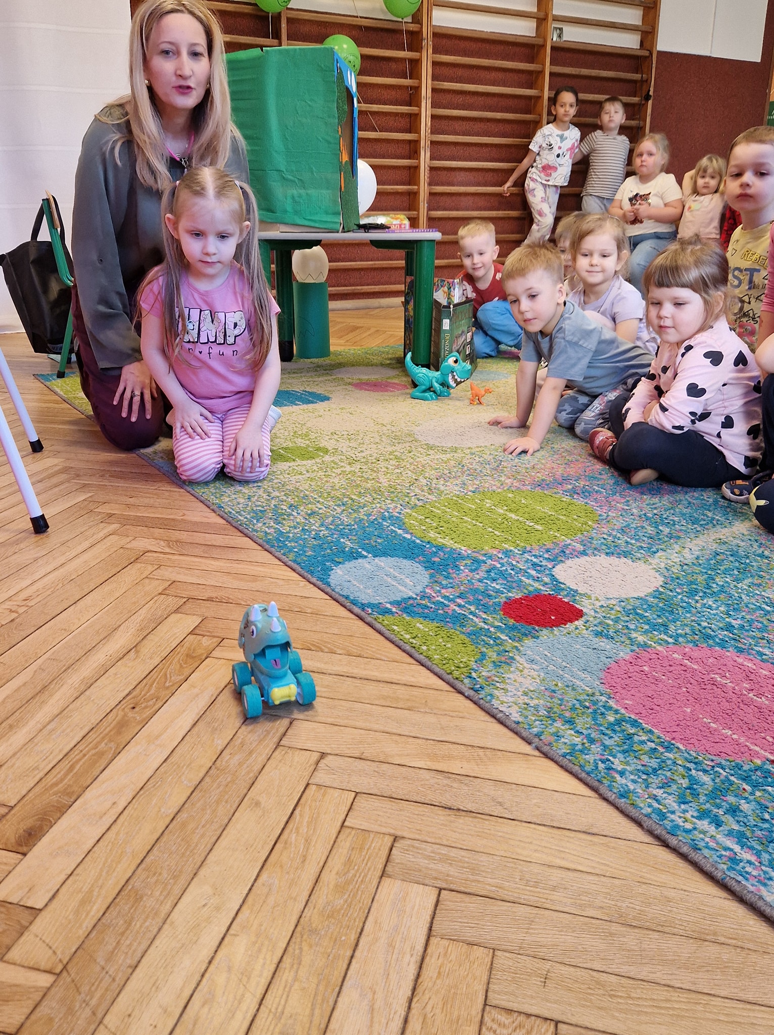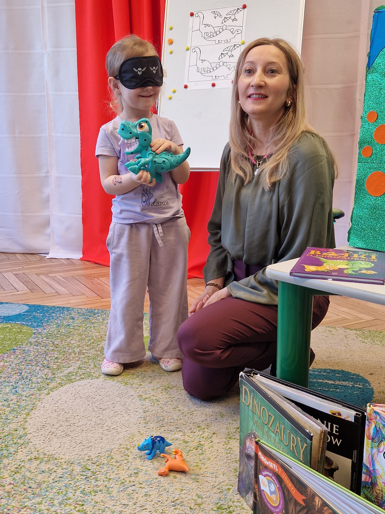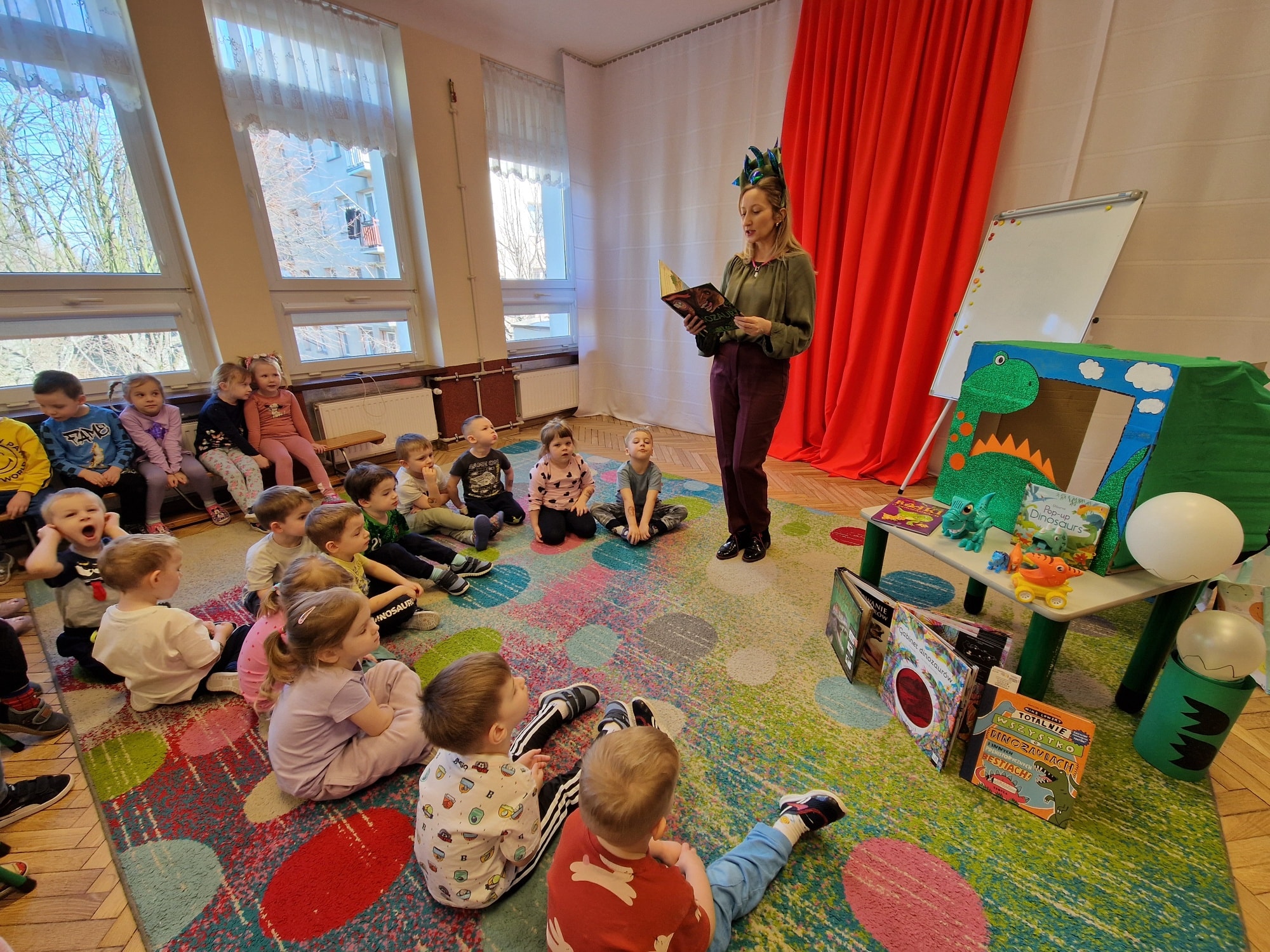 Dziś w naszym przedszkolu odbyło się wyjątkowe święto – Dzień Dinozaura! W wydarzeniu z ogromnym zaciekawieniem uczestniczyły wszystkie grupy  Krasnale, Pszczółki, Misie oraz Kocurki. Naszym szczególnym gościem tego dnia była Pani Karolina Kalinowska z CRE WŁ w Piotrkowie Trybunalskim Biblioteka Pedagogiczna Filia w Opocznie, która odkryła przed nami tajemnice prehistorycznego świata! Dzieci z radością poznawały ciekawostki o dinozaurach, rozwiązywały zagadki, rebusy. A dzięki pięknie ilustrowanym książkom, mogliśmy wyobrazić sobie jak wygladali... ogromny Tyrannosaurus rex, majestatyczny Diplodok, czy opancerzony Triceratops. Dużą popularnością cieszyła się książka, która skrywała ukryte obrazki..