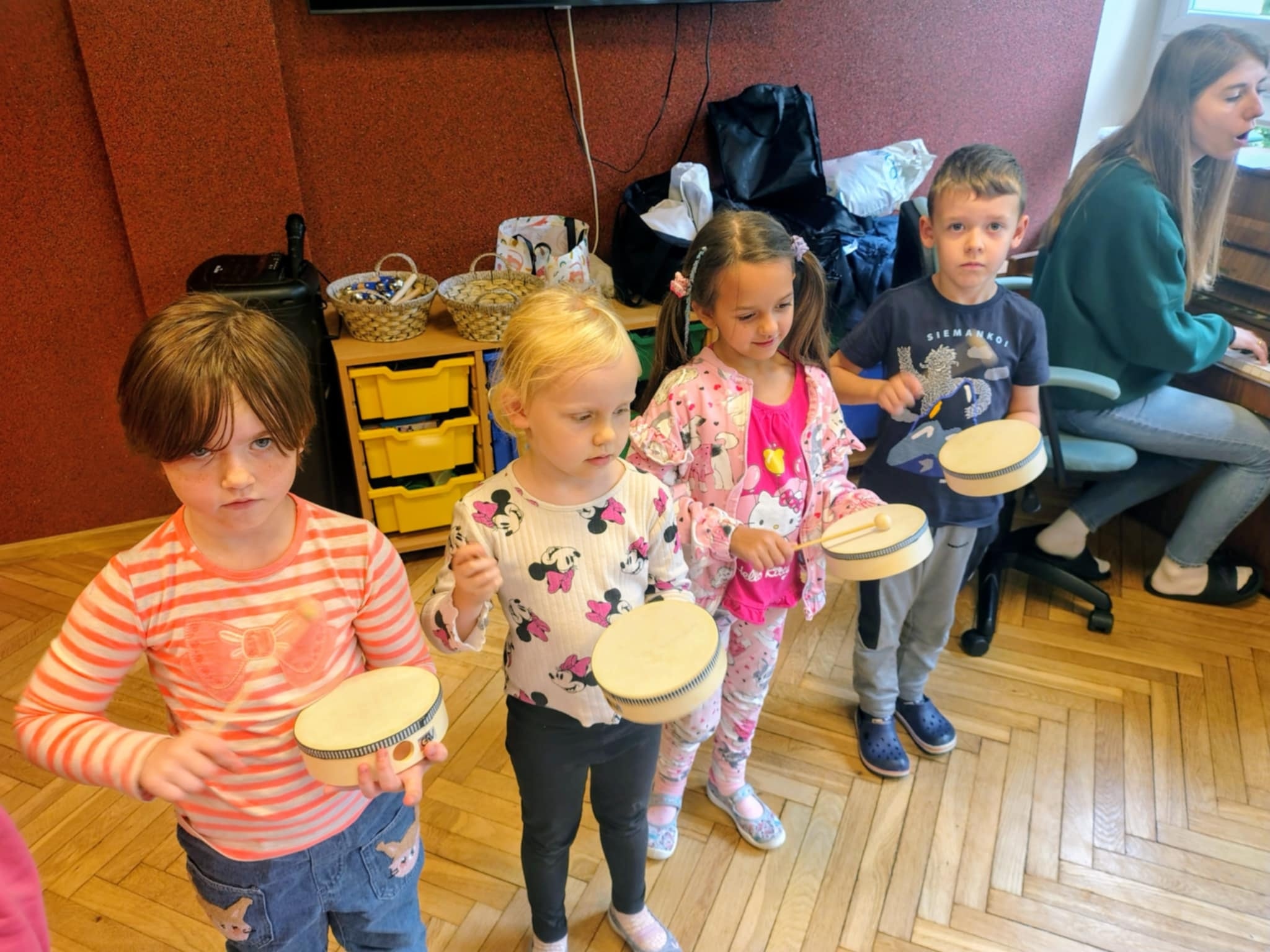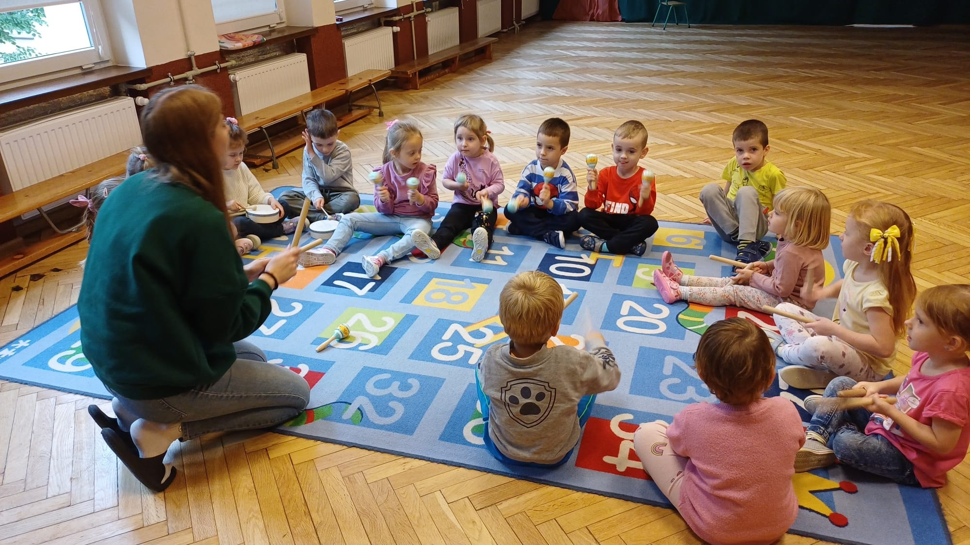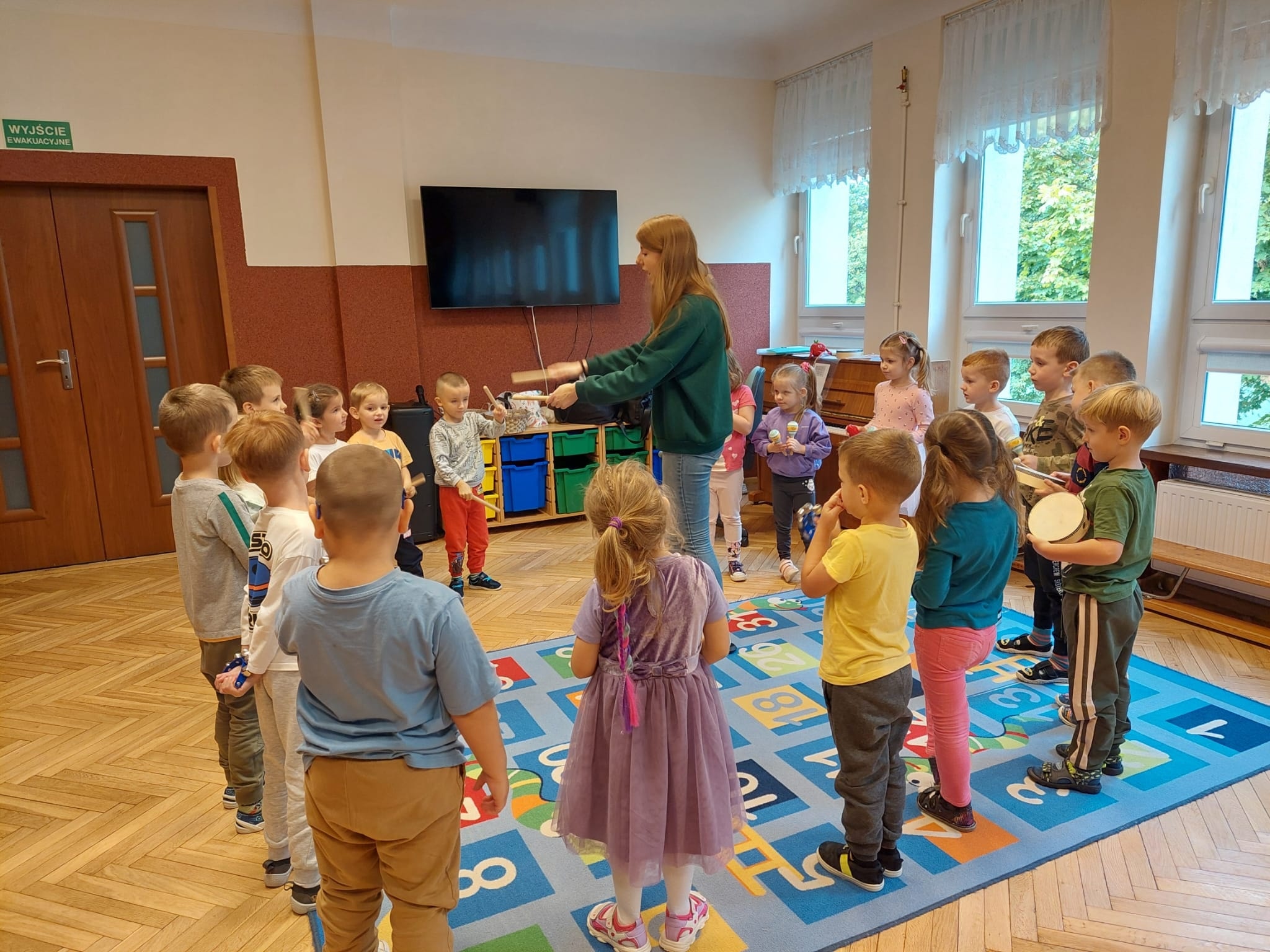 Muzyka jest wszędzie, muzyka łagodzi obyczaje, rozwesela i relaksuje. Muzyka ma nawet swoje święto, które jest obchodzone właśnie dziś, 1 października. Międzynarodowy Dzień Muzyki - to doskonała okazja, aby grać, tańczyć i śpiewać. W tym dniu nasze przedszkolaki pod bacznym okiem Pani Asi - prowadzącej zajęcia z rytmiki przeniosły się do krainy dźwięków, aby wspólnie bawić się muzyką. Przedszkolaki nie tylko uważnie słuchały utworów muzycznych, ale również aktywnie uczestniczyły w zabawach muzycznych oraz muzyczno-ruchowych. Zapoznały się także z różnorodnością instrumentów muzycznych. Zabawa była wyśmienita, a dzieci radosne i zadowolone.