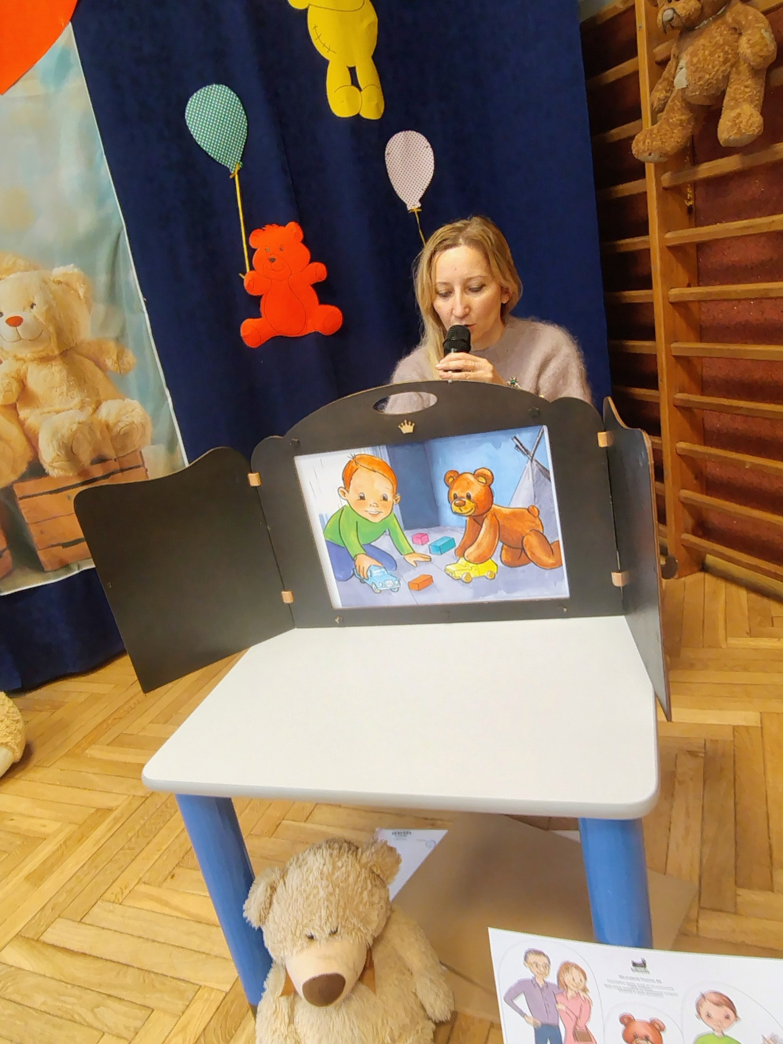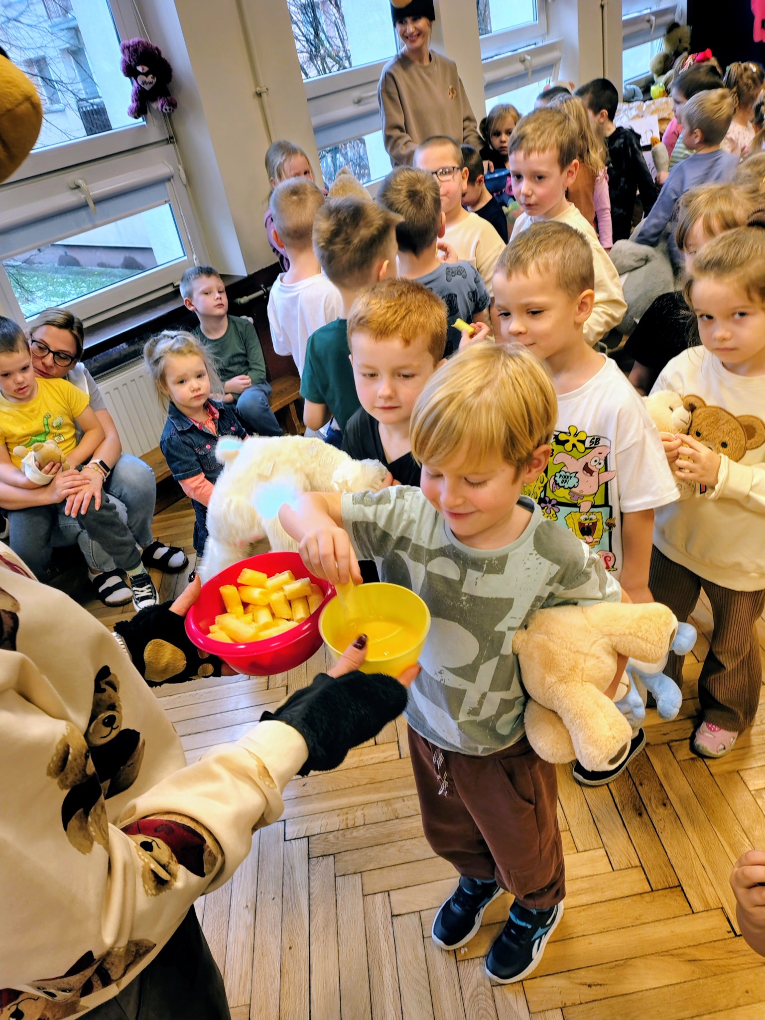 25 listopada swoje święto obchodzi najlepszy przyjaciel wszystkich dzieci- Pluszowy Miś. Najlepsza zabawka, która często pomaga maluchom podczas zasypiania. Nic więc dziwnego, że misie towarzyszą nam od dziecięcych lat. Dziś w naszej 5- teczce od samego rana było gwarno i wesoło. Uczliliśmy święto misiowych przytulanek wspólną zabawą przy muzyce, misiowymi zagadkami, konkurencjami związanymi z pluszowymi misiami i degustacją pysznego miodku. Każde dziecko przyniosło z tej okazji swojego ulubionego misia, który towarzyszył mu przez cały dzień, do którego można było się przytulić.Nasze przedszkole odwiedziła Pani Karolina Kalinowska z CRE WŁ w Piotrkowie Trybunalskim Biblioteka Pedagogiczna Filia w Opocznie, która zaprezentowała przedszkolakom teatrzyk kamishibai pt. "Mój przyjaciel pluszowy miś". Zaśpiewaliśmy wspólnie piosenkę " Misie dwa" (aut.Monika Kluza), bawiąc się przy tym znakomicie.