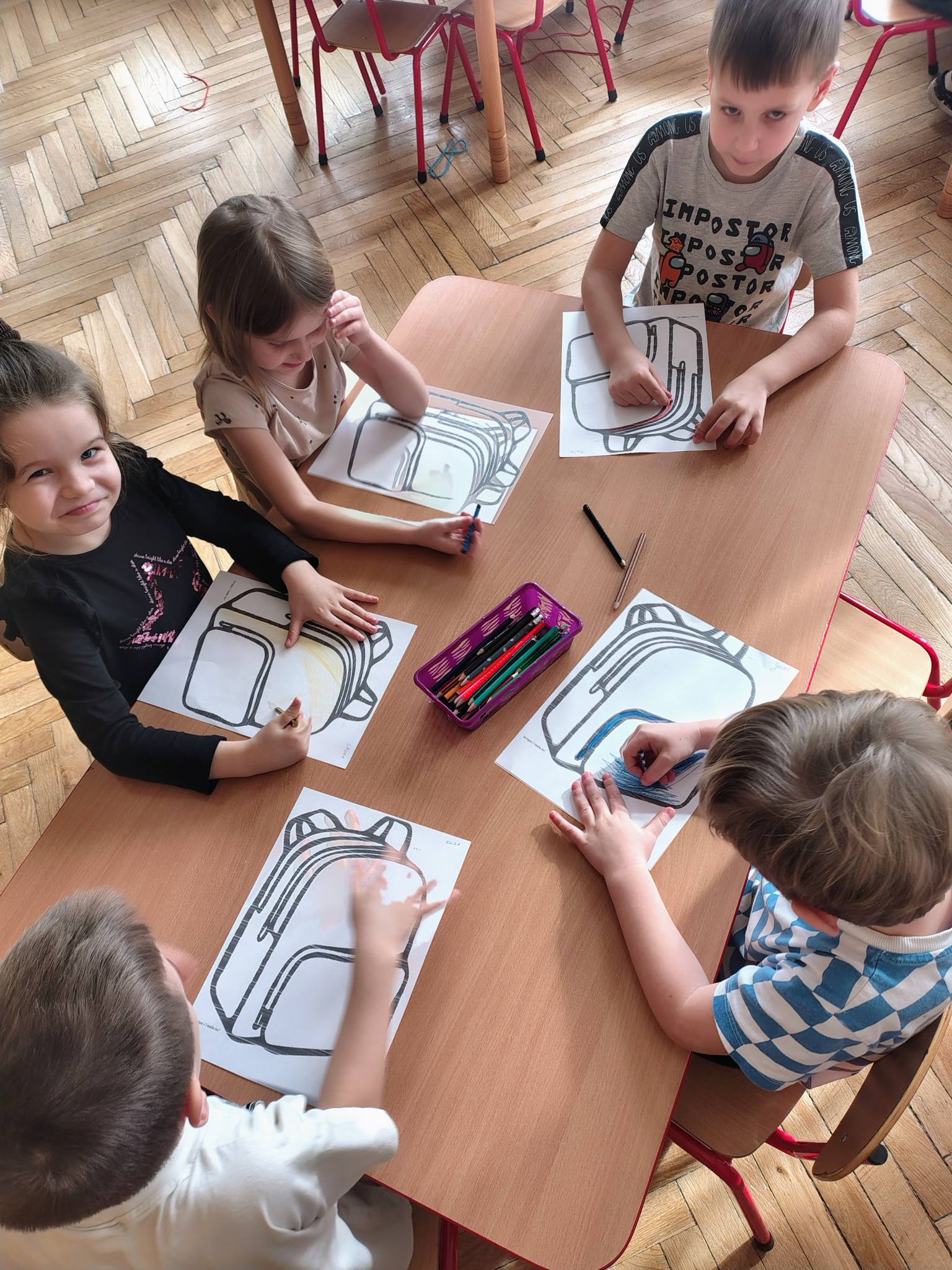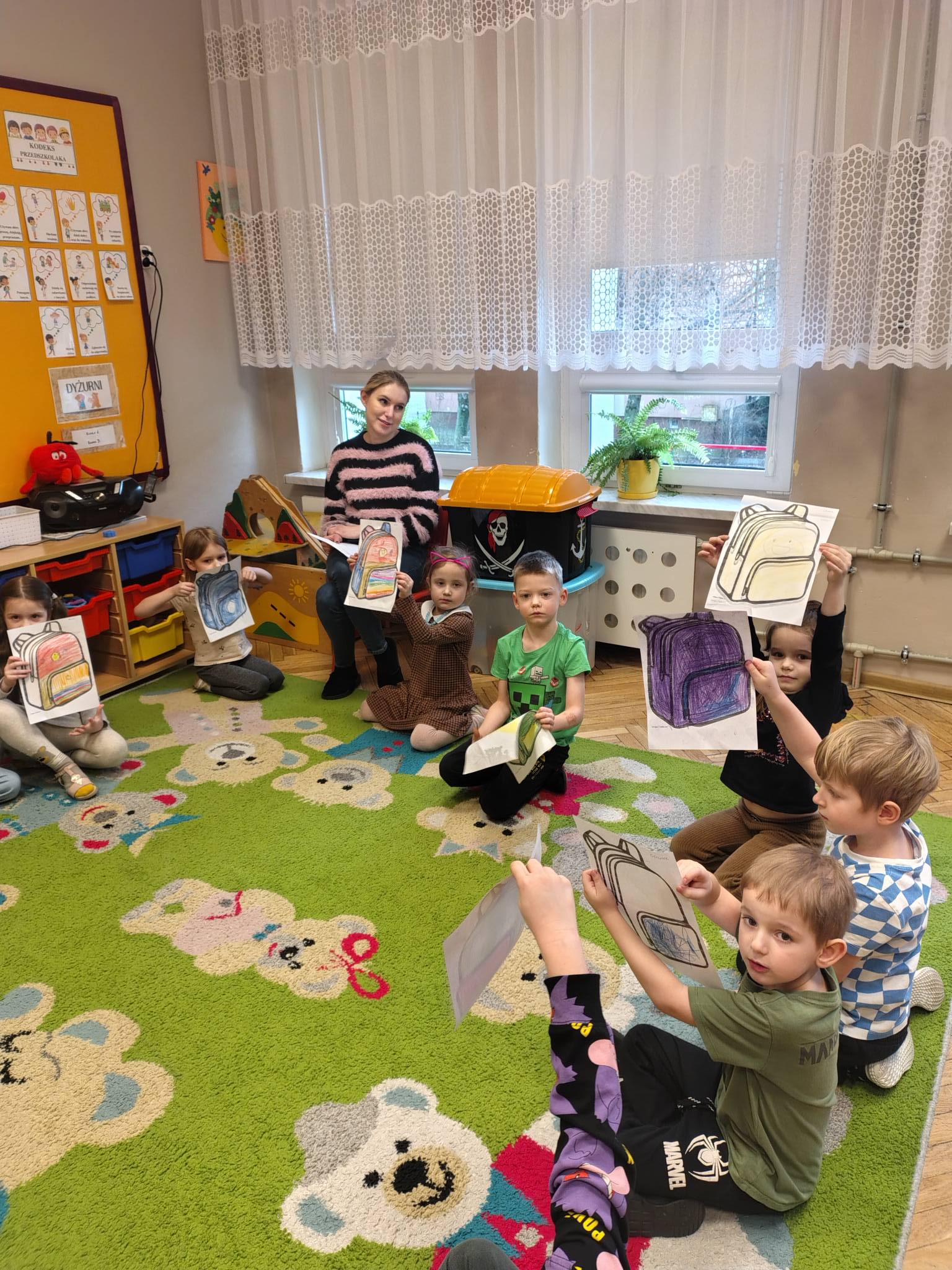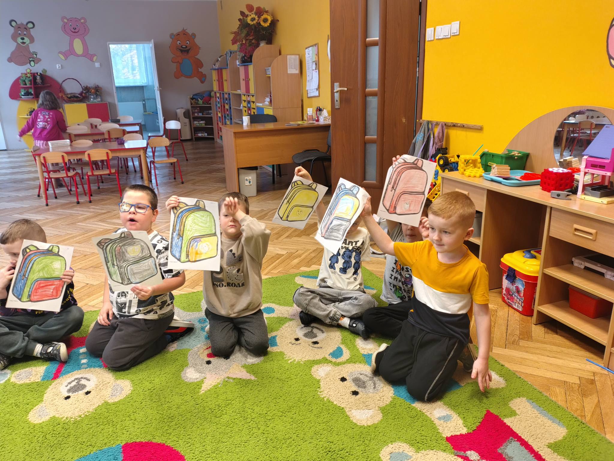 Dzieci wysłuchały również historyjki „Kolorowe plecaki emocji”, dzięki której mogły lepiej zrozumieć, że każdy z nas nosi w sobie różne uczucia — i wszystkie są ważne. Na zakończenie zajęć każdy przedszkolak stworzył swój własny plecak emocji, pokazując, jak się dziś czuje. Zajęcia te pomogły dzieciom jeszcze lepiej poznać i zrozumieć świat naszych emocji, uświadomiły im, że wszystkie emocje są ważne i potrzebne, a także, że każdy z nas ma prawo je odczuwać i mówić o nich.