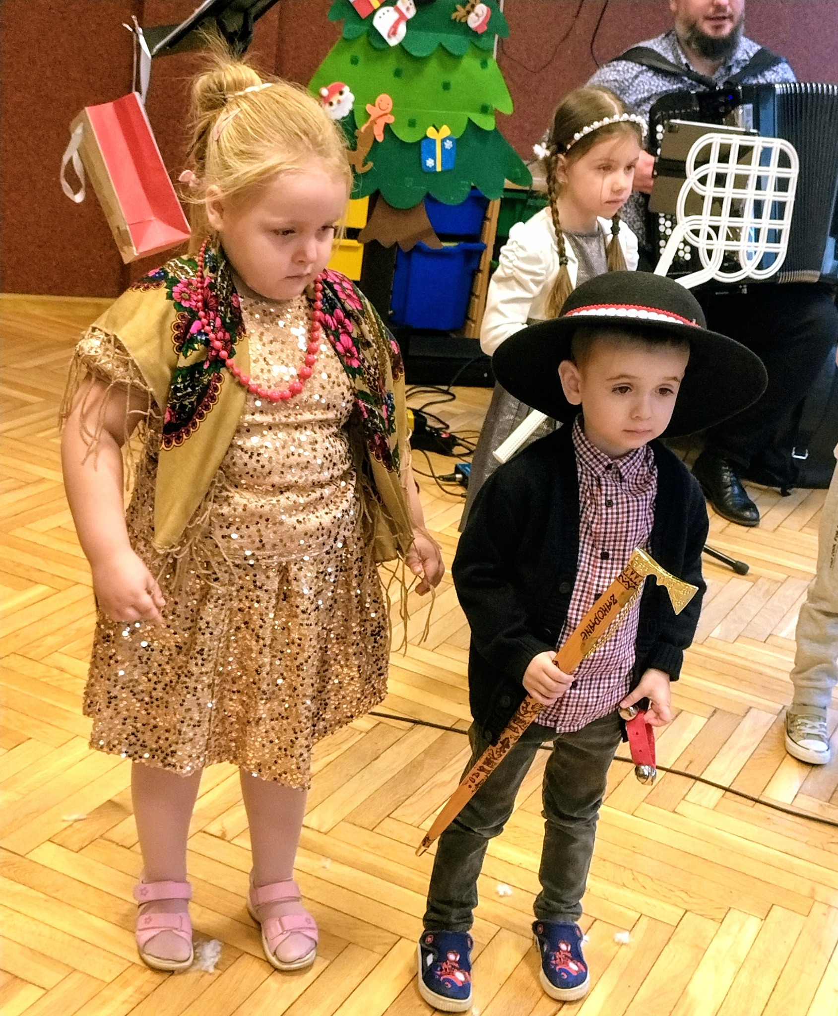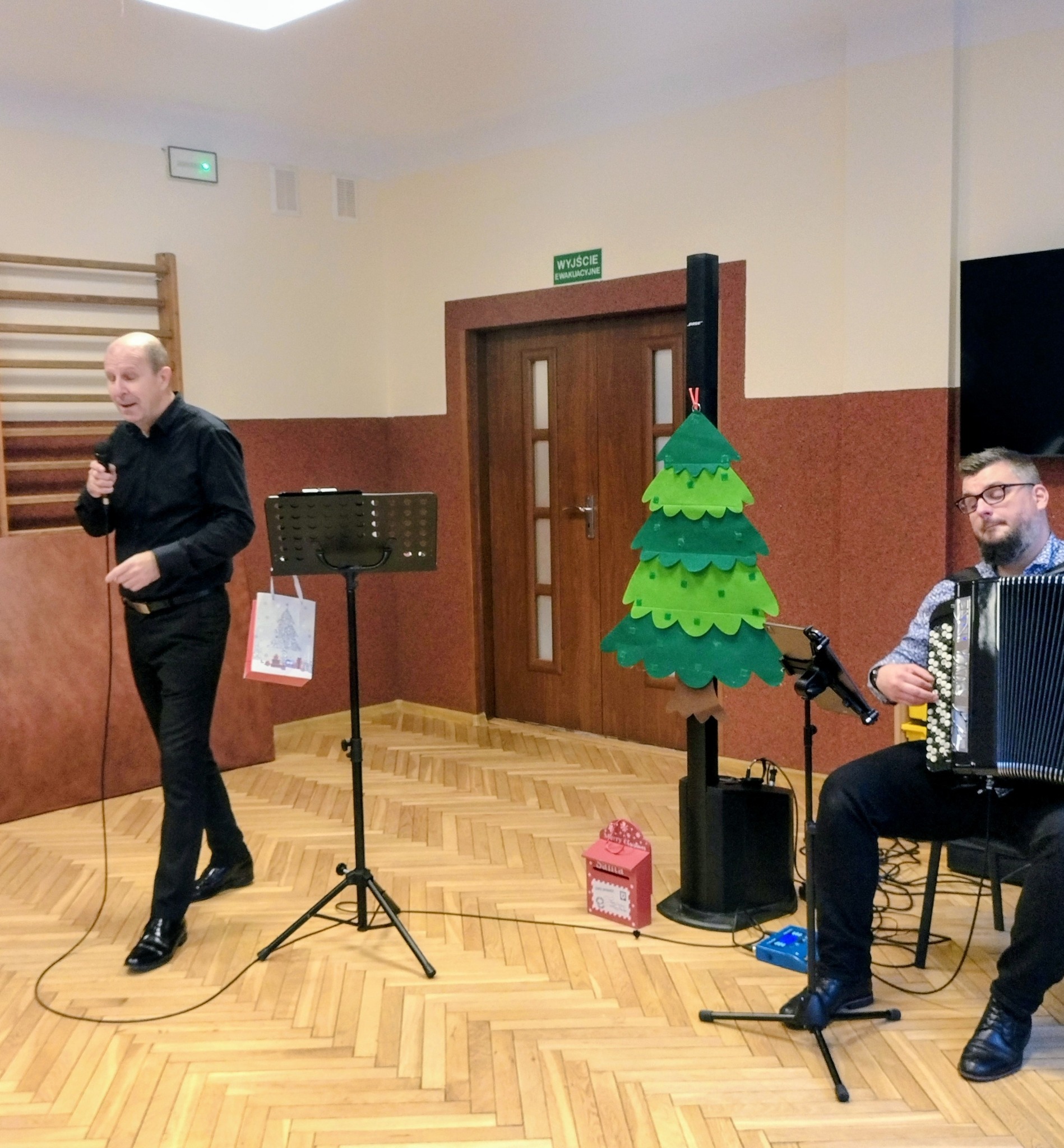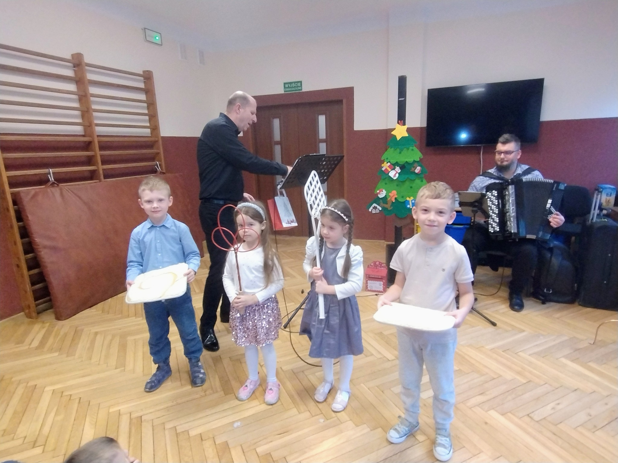 Za nami kolejna filharmonia na kółkach. Tym razem Pan Maciej Goździela i Michał Mroziński wprowadzili nas w nastrój zbliżających się wielkimi krokami Świąt Bożego Narodzenia. Przy dźwiękach takich utworów: "Kolęda dla Piotra", "Anielskie porządki", "Jezus malusieńki", "Z nieba bliżej do Tatr", "Kolęda domowa", czy "Pójdźmy wszyscy do stajenki" wszyscy poczuliśmy świąteczny klimat. Dźwięki muzyki w wykonaniu naszych gości sprawiły, że poczuliśmy wszyscy tę piękną, tradycyjną atmosferę. Dziękujemy Panu Maćkowi i Panu Michałowi. Czekamy na kolejne muzyczne spotkanie.
