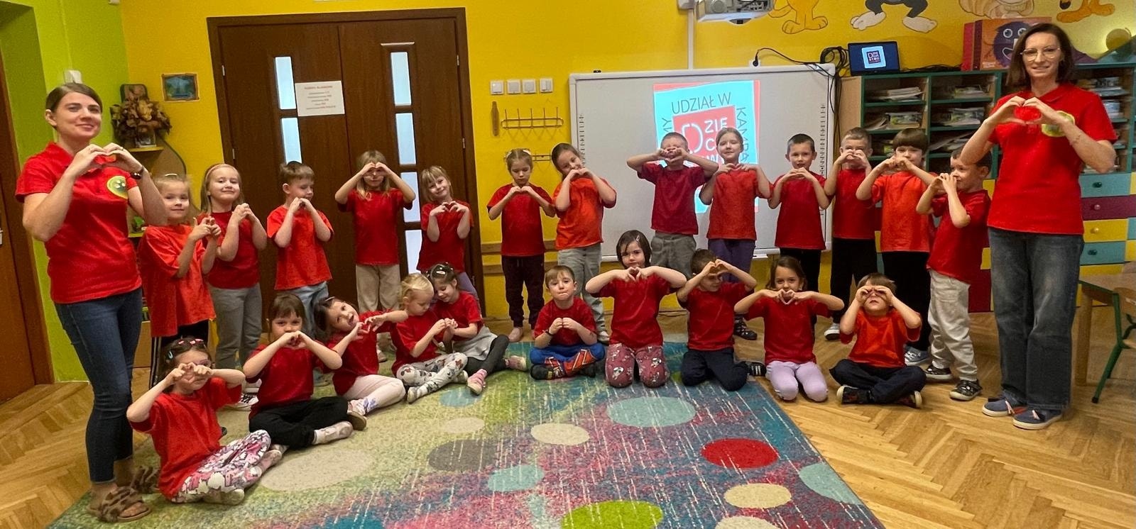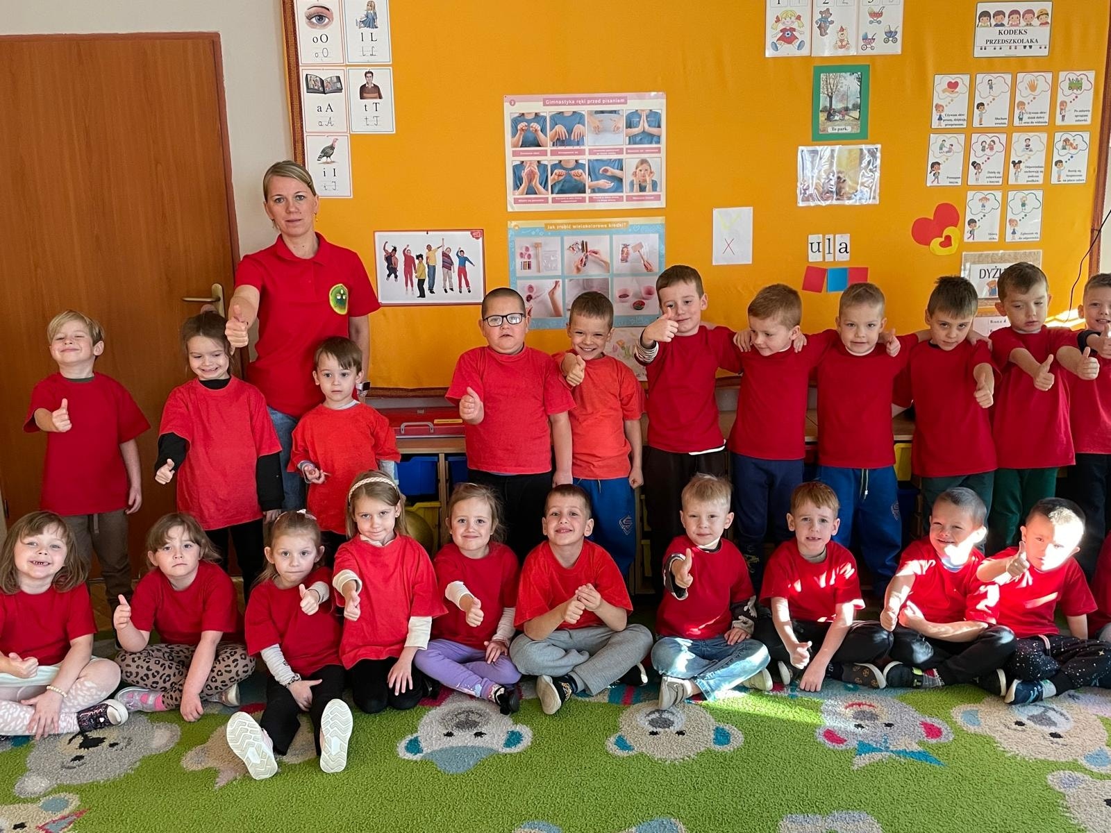 Dziś w naszej placówce odbył się finał Kampanii „Dzieciństwo bez przemocy”. 19 listopada to dla Nas szczególna data, właśnie wtedy obchodzimy Międzynarodowy Dzień Przeciwdziałania Przemocy wobec Dzieci - moment, w którym wspólnie stajemy po stronie najmłodszych i przypominamy, że każde dziecko zasługuje na bezpieczne dzieciństwo. W ostatnich tygodniach Pani Pedagog Ewelina Tokarska prowadziła pogadanki we wszystkich grupach, podczas których omawiała tematy tj.: czym jest przemoc i jak ją rozpoznać, gdzie szukać pomocy w trudnych sytuacjach, jak dbać o własne granice i szanować granice innych, dlaczego ważne jest mówienie o swoich uczuciach i potrzebach. Dzieci poznawały swoje prawa, rozmawiały o tym, jak ważne jest bezpieczeństwo i szacunek, a także przygotowały piękne prace plastyczne, rozwijając przy tym swoje umiejętności grafomotoryczne. Było twórczo, ciekawie i naprawdę radośnie!...a dziś wszyscy ubraliśmy się na czerwono. Finał Kampanii był okazją do wspólnej refleksji nad tym jak ważne jest tworzenie świata, w którym każde dziecko może czuć się kochane, akceptowane i bezpieczne.