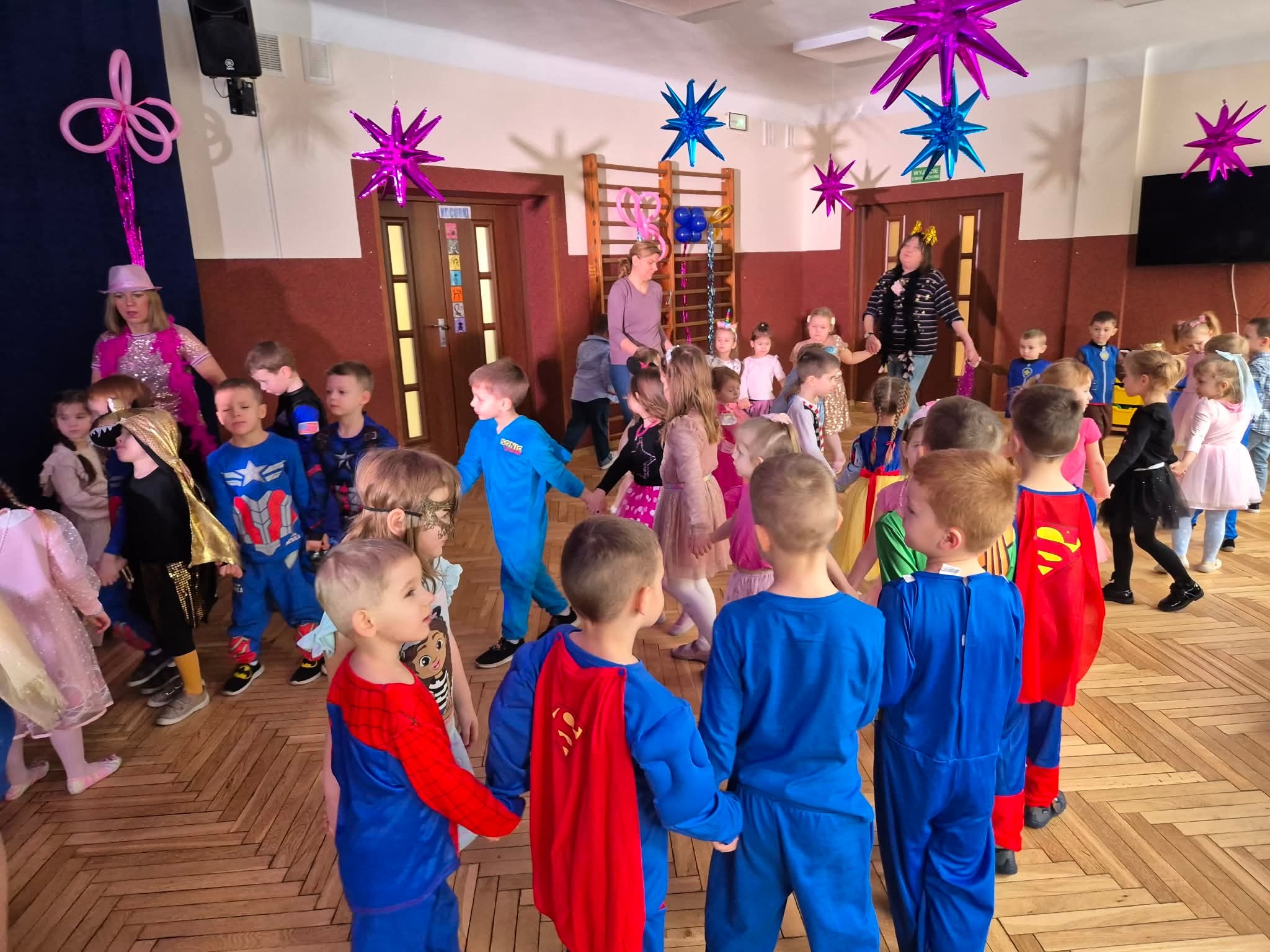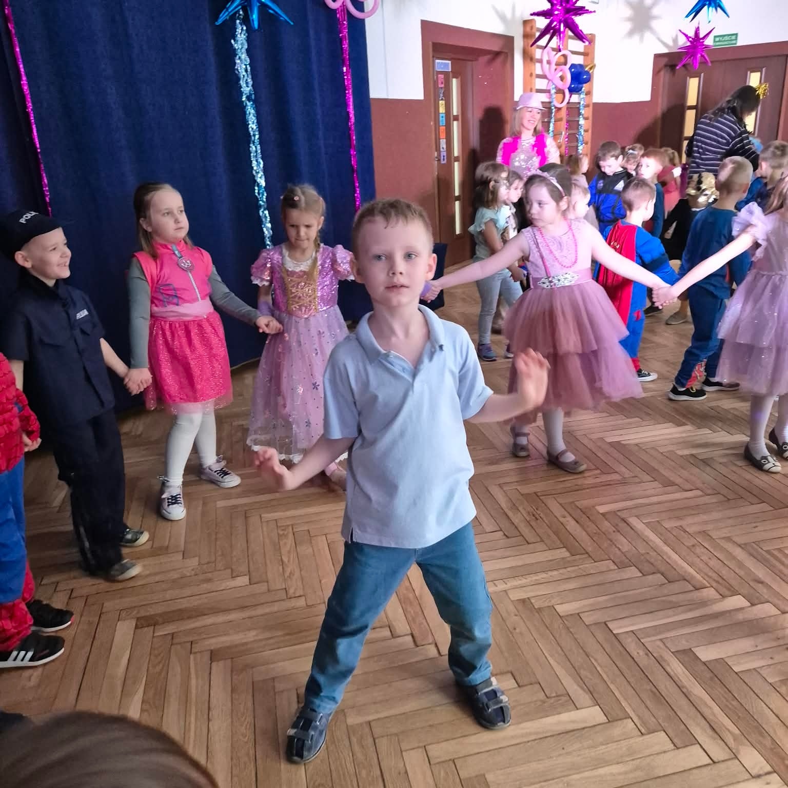 Za nami wspaniały i długo wyczekiwany dzień pełen karnawałowego szaleństwa! Dzieci w przepięknych strojach wspólnie tańczyły, bawiły się, brały udział w animacjach przygotowanych przez wesołego Klauna. Wspólne tańce i zabawy dodały energii i zachęcały do brania udziału w kolejnych atrakcjach. Dziękujemy wszystkim za wspaniałą zabawę, a Rodzicom za piękne przebrania dla dzieci! Nie zabrakło sesji fotograficznej dzięki której każdy mógł uwiecznić swoje przebranie. Było tanecznie, kolorowo i bardzo wesoło - tak właśnie w naszej piąteczce świętujemy karnawał! Niezapomniane wrażenia i pozytywne emocje zostaną z nami na długo.
