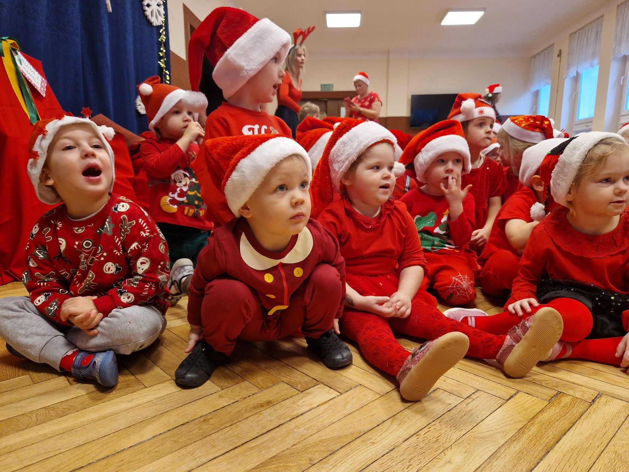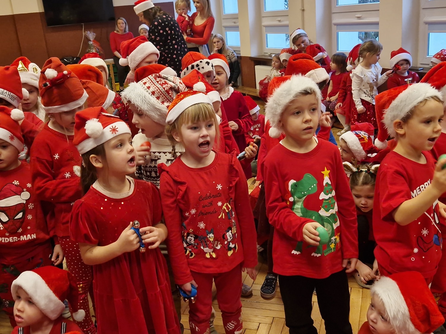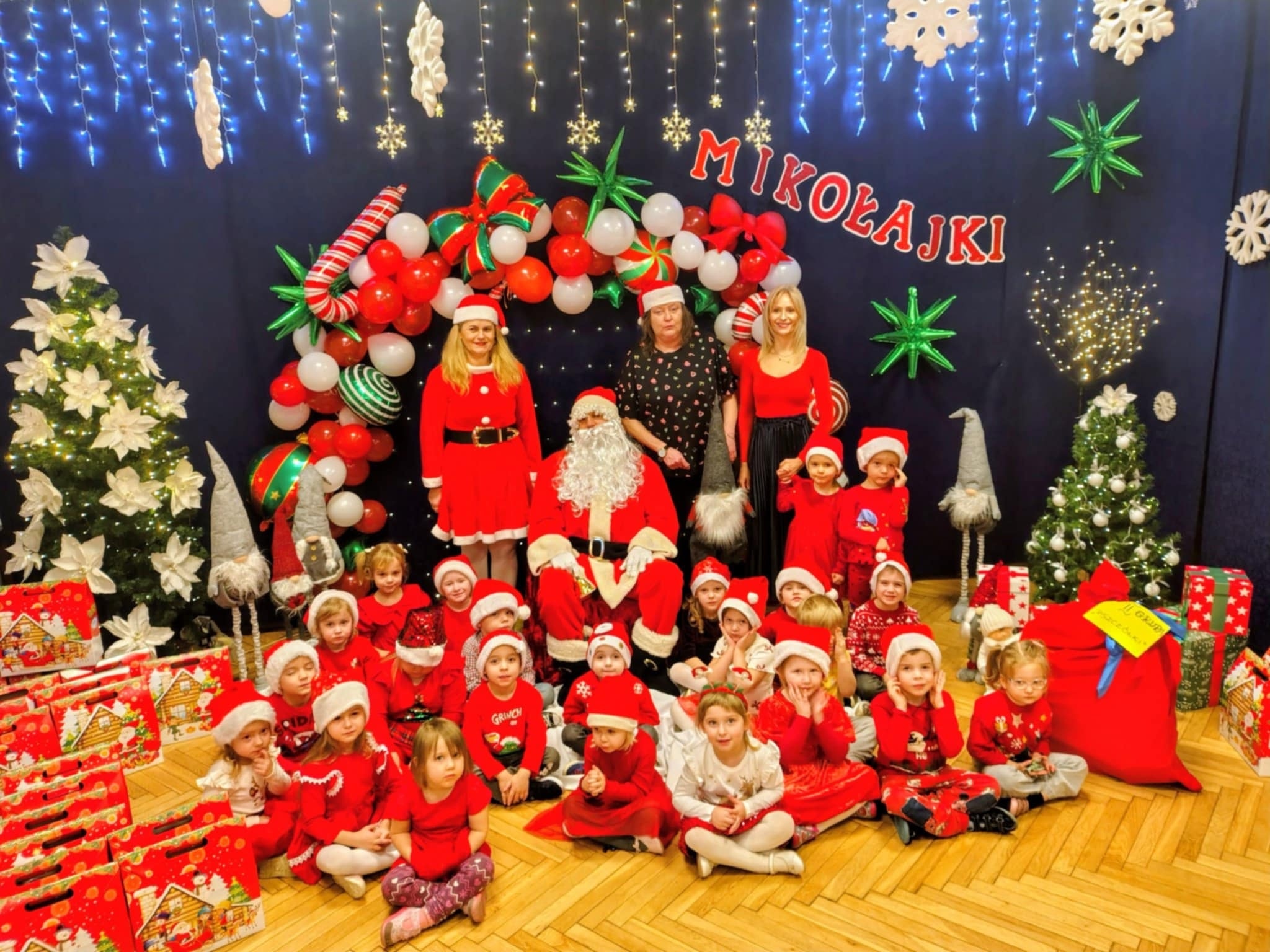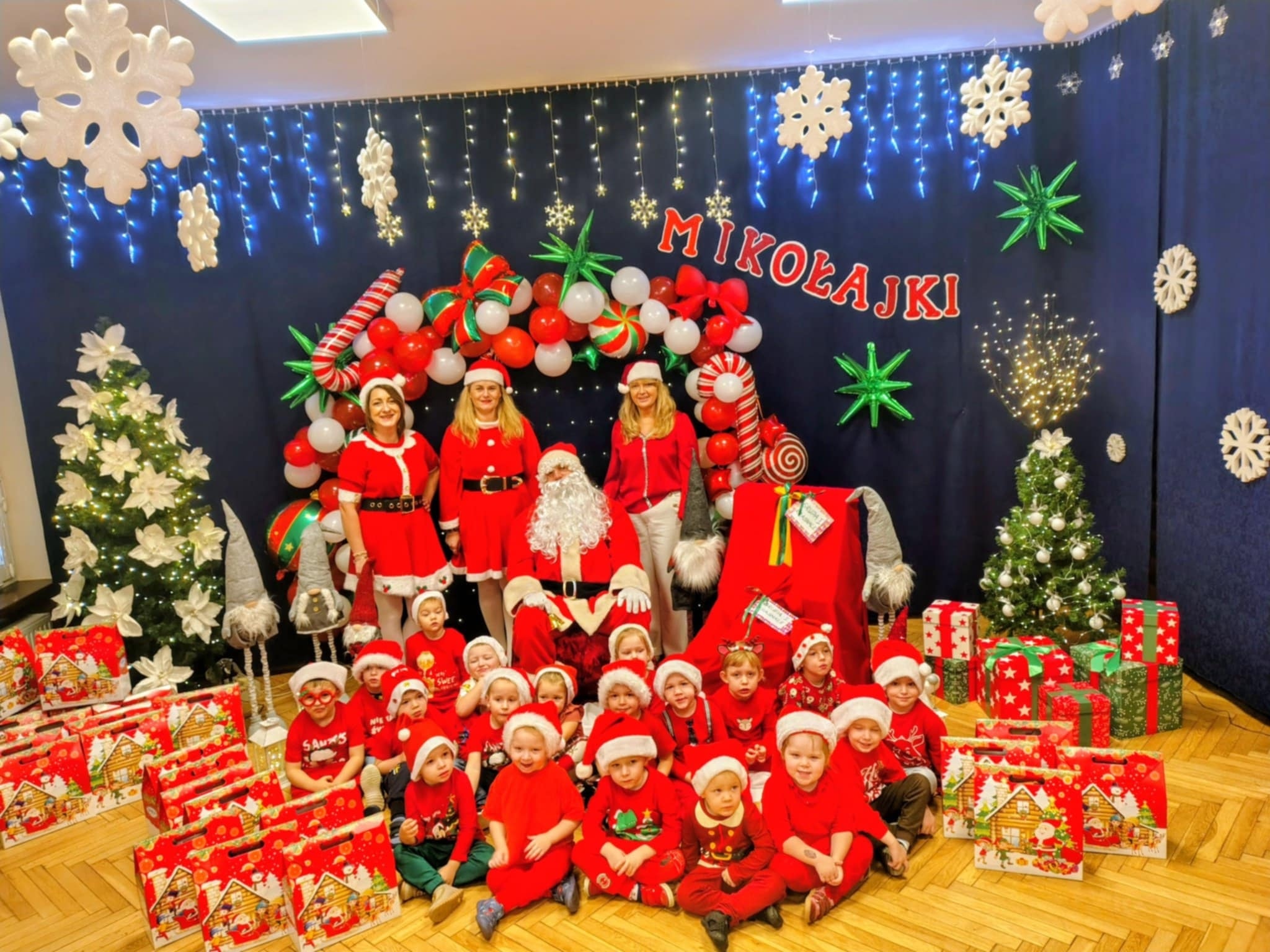 Święty Mikołaj odwiedził dziś naszą 5-teczkę! Przyniósł ze sobą mnóstwo uśmiechu, zagadek, piosenek, wierszyków...No i oczywiście piękne prezenty! Każde dziecko było zachwycone - radość i wesoły gwar wypełniły całe przedszkole. Nawet Pani Dyrektor Aneta Zięba i wszystkie Panie, bawiły się świetnie - "Mikołajkowo", bo taka atmosfera udzieliła się wszystkim! Prezenty którymi Mikołaj obdarował dzieci to był strzał w 10! Wszyscy wrócili do domów w pełni zadowoleni. MIKOŁAJU!!! Dziękujemy za wizytę, już odliczamy dni do Świąt.