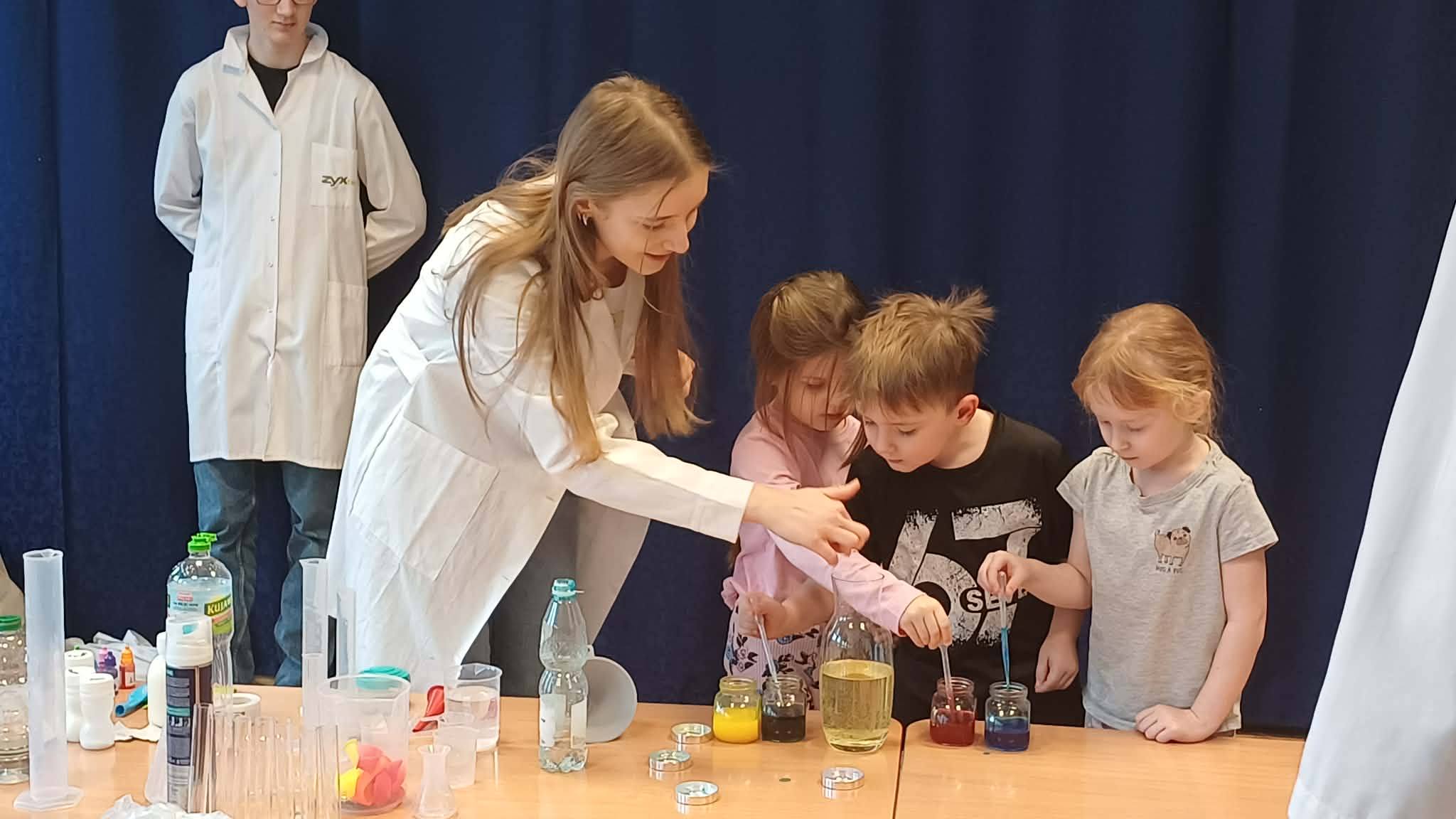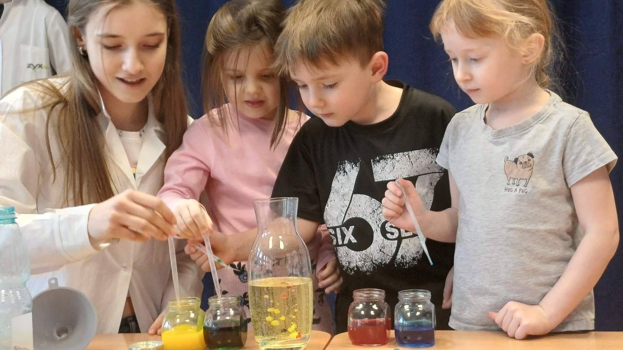 w ich przeprowadzeniu, ucząc się przy tym praktycznego doświadczania oraz rozwijania kreatywności. Była to doskonała okazja, by oswoić dzieci z nauką i przygotować je do przyszłych wyzwań edukacyjnych. Kto wie, może wśród naszych przedszkolaków jest przyszły naukowiec.... Serdecznie dziękujemy Pani Ani oraz jej podopiecznym ze SP Nr 1 za bardzo ciekawe i odkrywcze zajęcia dla przedszkolaków.