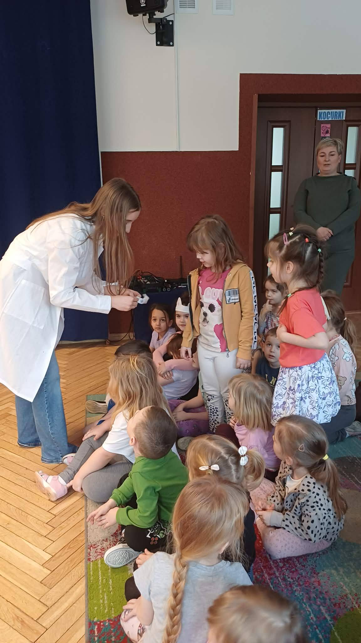 Dziś nasze przedszkole odwiedziła Pani Ania Tkaczyk, mama Wojtka z gr. Pszczółki. Towarzyszyli jej uczniowie klasy 8a ze Szkoły Podstawowej Nr 1 w Opocznie: Szymon Matyjaszewski, Oskar Deka, Filip Kowalczyk, Julia Białecka, Ania Borkowska oraz Weronika Konecka. Nasi goście zorganizowali dla dzieci niesamowite warsztaty chemiczne, w których wykorzystali różne produkty wykorzystywane na co dzień: mleko, olej, wodę, czy barwniki spożywcze. Przeprowadzone eksperymenty zachwyciły wszystkie dzieci, tym bardziej, że mogły one osobiście uczestniczyć