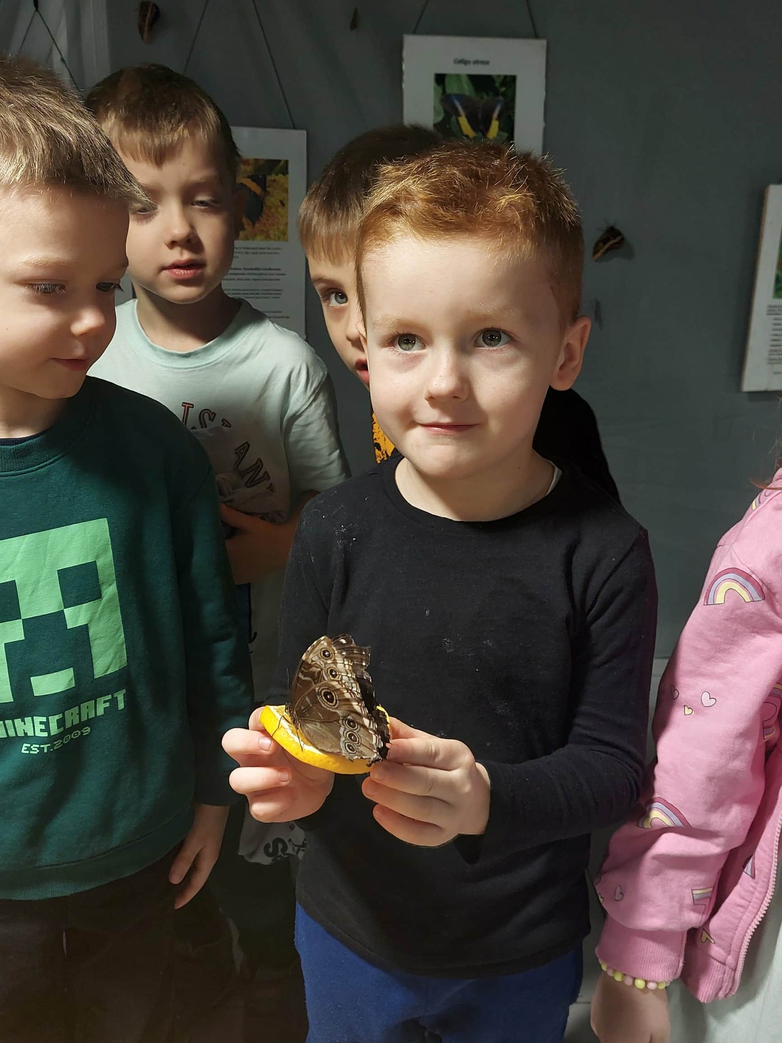 Nasze dwie najstarsze grupy wybrały się wraz ze swoimi paniami na wystawę żywych motyli, która została zaprezentowana w MDK w Opocznie. Hodowca tych pięknych i kolorowych owadów opowiedział dzieciom kilka ciekawostkach dotyczących ich życia i rozwoju oraz sposobu rozmnażania. Atrakcją dla Misiów i Kocurków była możliwość karmienia motyli przysmakami- owocami egzotycznymi. Dzieci były zachwycone, że mogły z bliska podziwiać te piękne i delikatne owady. Była to również okazja do poszerzania wiedzy przyrodniczej, a także wspólnego eksplorowania nowych doświadczeń.
