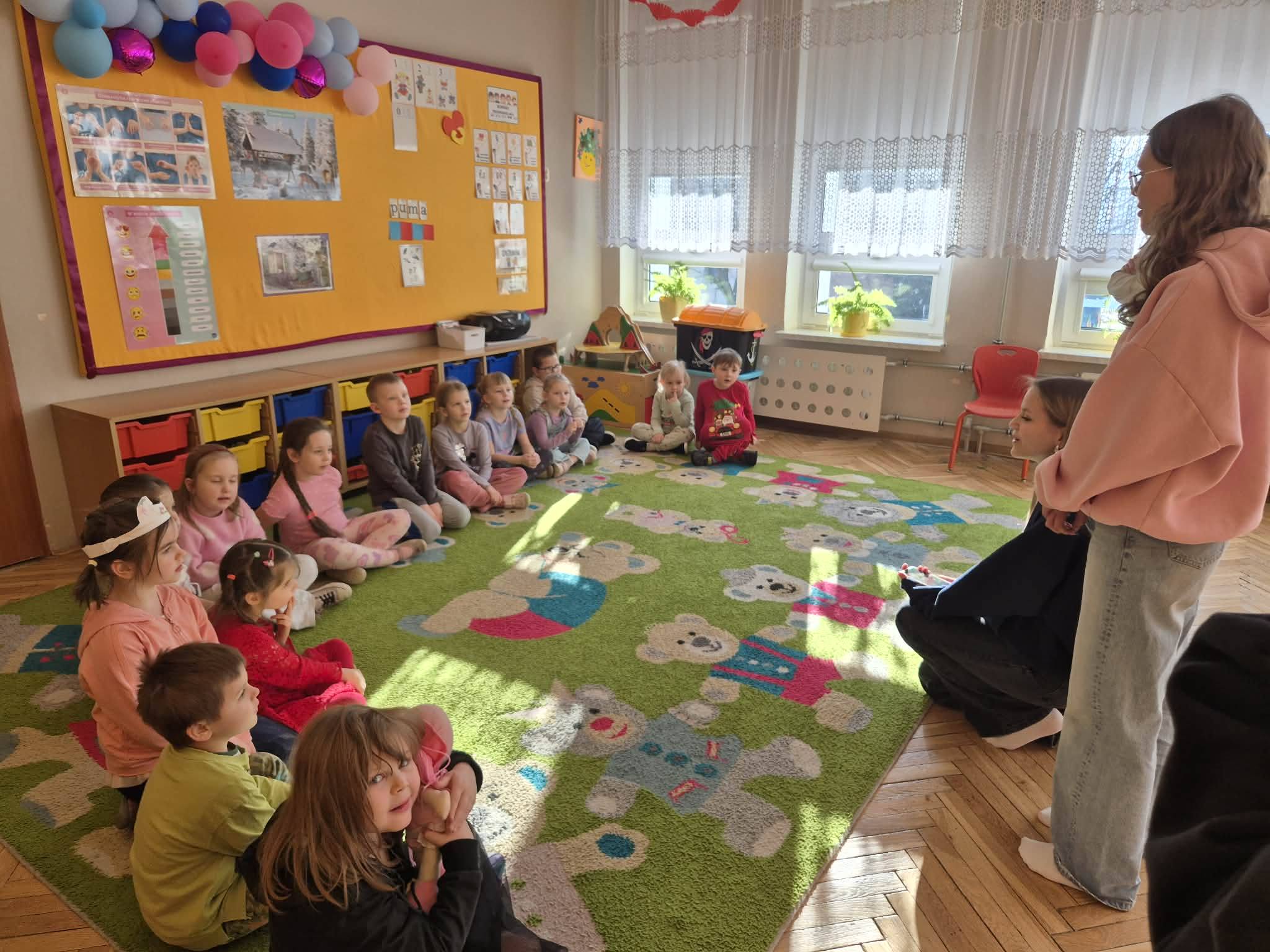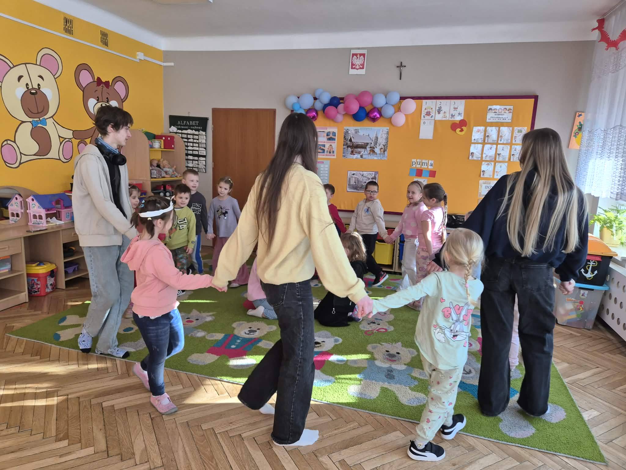 Uczniowie I LO im. Stefana Żeromskiego w Opocznie w Opocznie odwiedzili dzieci z grup "Misie" i "Kocurki" w ramach projektu "Złote Szkoły NBP". Spotkanie miało na celu zapoznanie dzieci z tematyką zarządzania finansami i odkładania na wyznaczony cel. Dzieci wzięły udział w wielu interesujących zabawach, m.in. szukały ukrytych w sali płatków kwiatów z nominałami polskich złotych, wzięły udział w opowieści ruchowej na temat tego, że warto odkładać złotówki i kupić sobie coś większego niż wydawać na małe przyjemności. Każdy przedszkolak otrzymał również tematyczną kolorowankę, którą potem pięknie pokolorował. Dzieci brały aktywny udział w zajęciach i chętnie zadawały pytania na nurtujące je tematy. Serdecznie dziękujemy naszym gościom za bardzo pouczające i niezwykle miłe spotkanie.